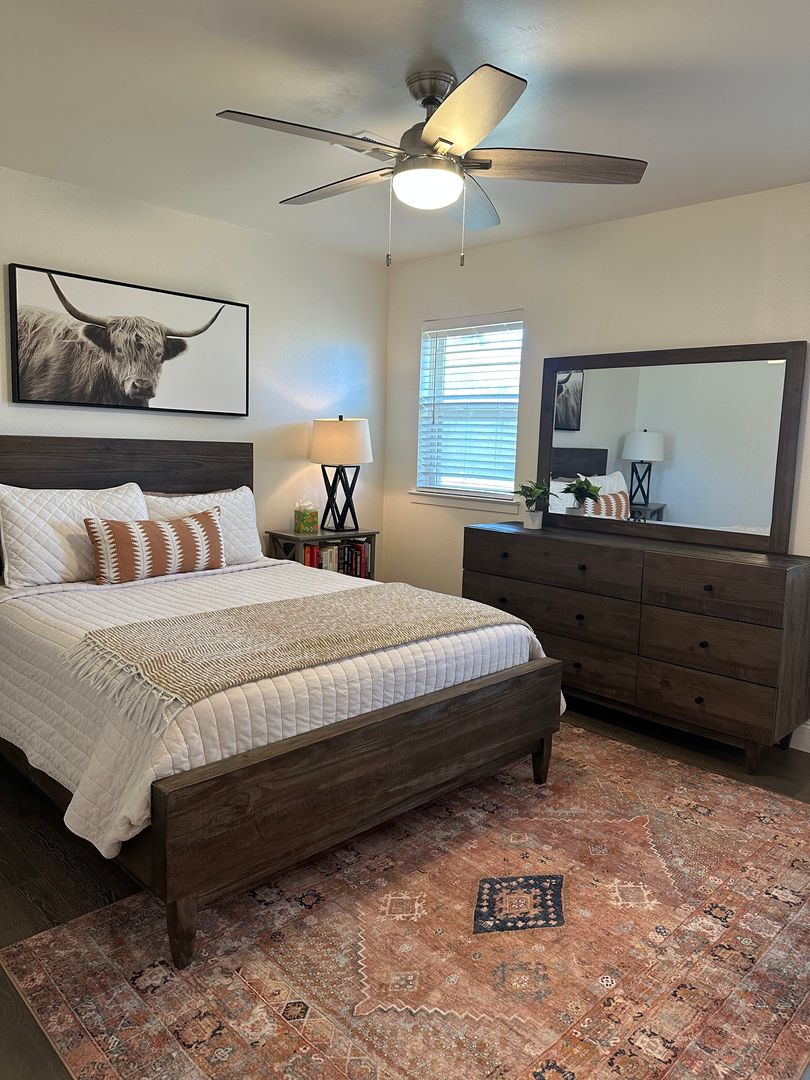 Every detail has been curated for both comfort and style. The home is fully furnished and professionally decorated, similar in quality and finish to our Cricket Hollow property, featuring modern artwork, designer furniture, and elegant lighting throughout. Enjoy an open floor plan with new hardwood floors, a fully equipped kitchen with quartz countertops, premium appliances, and all the essentials — cookware, plates, utensils, and even a coffee maker.