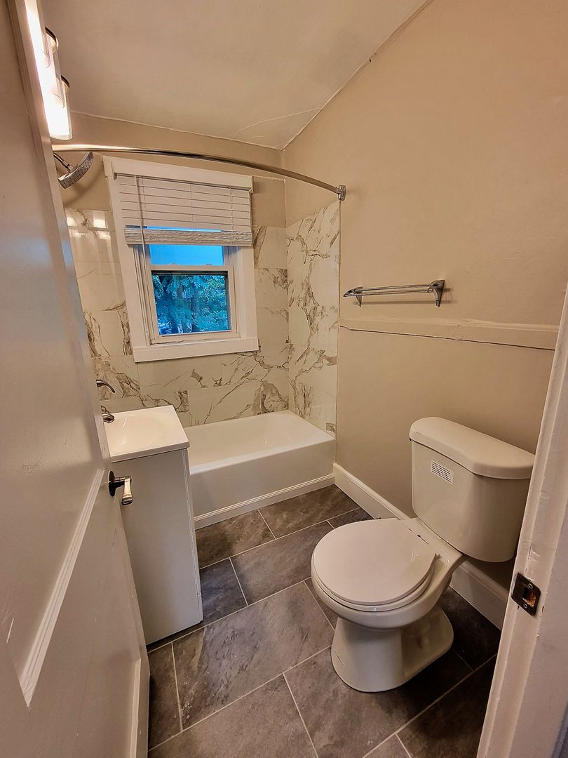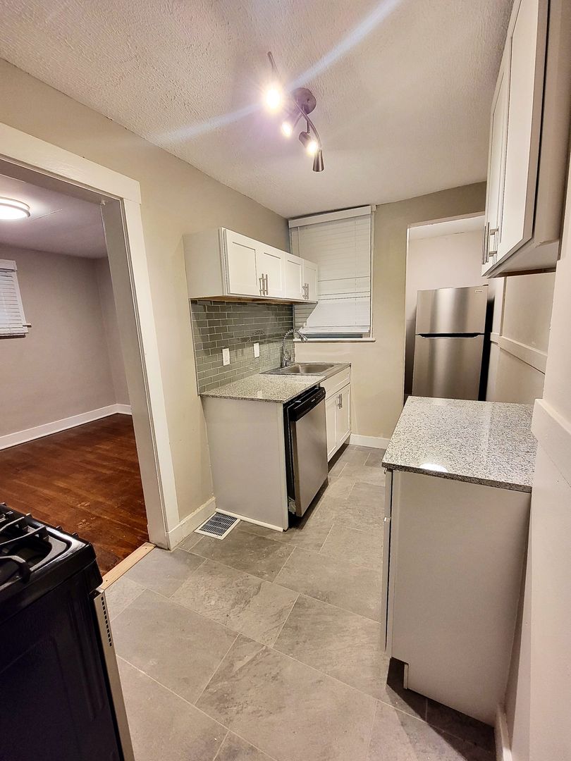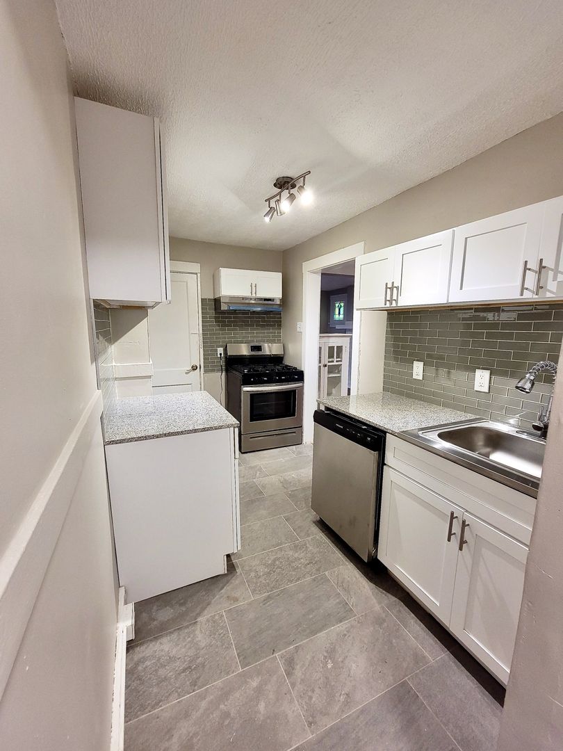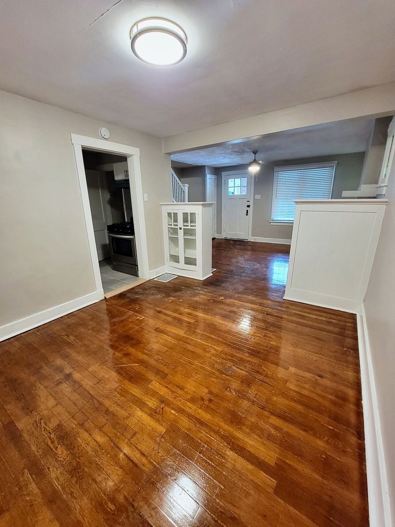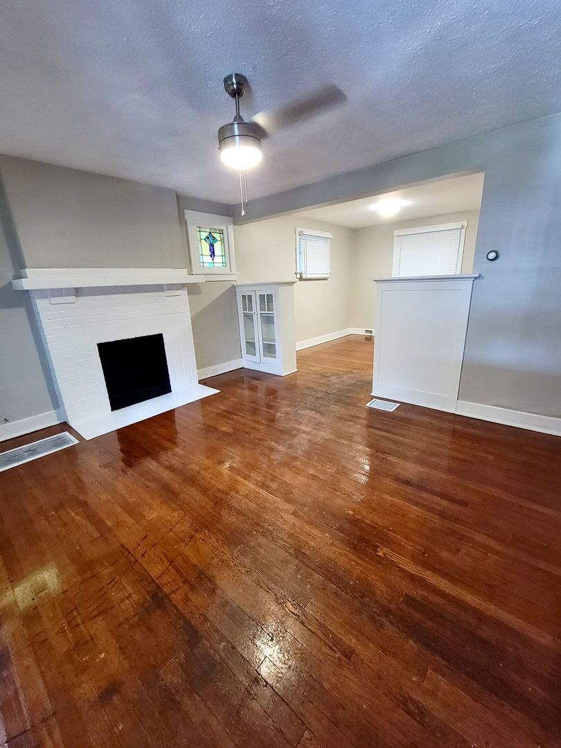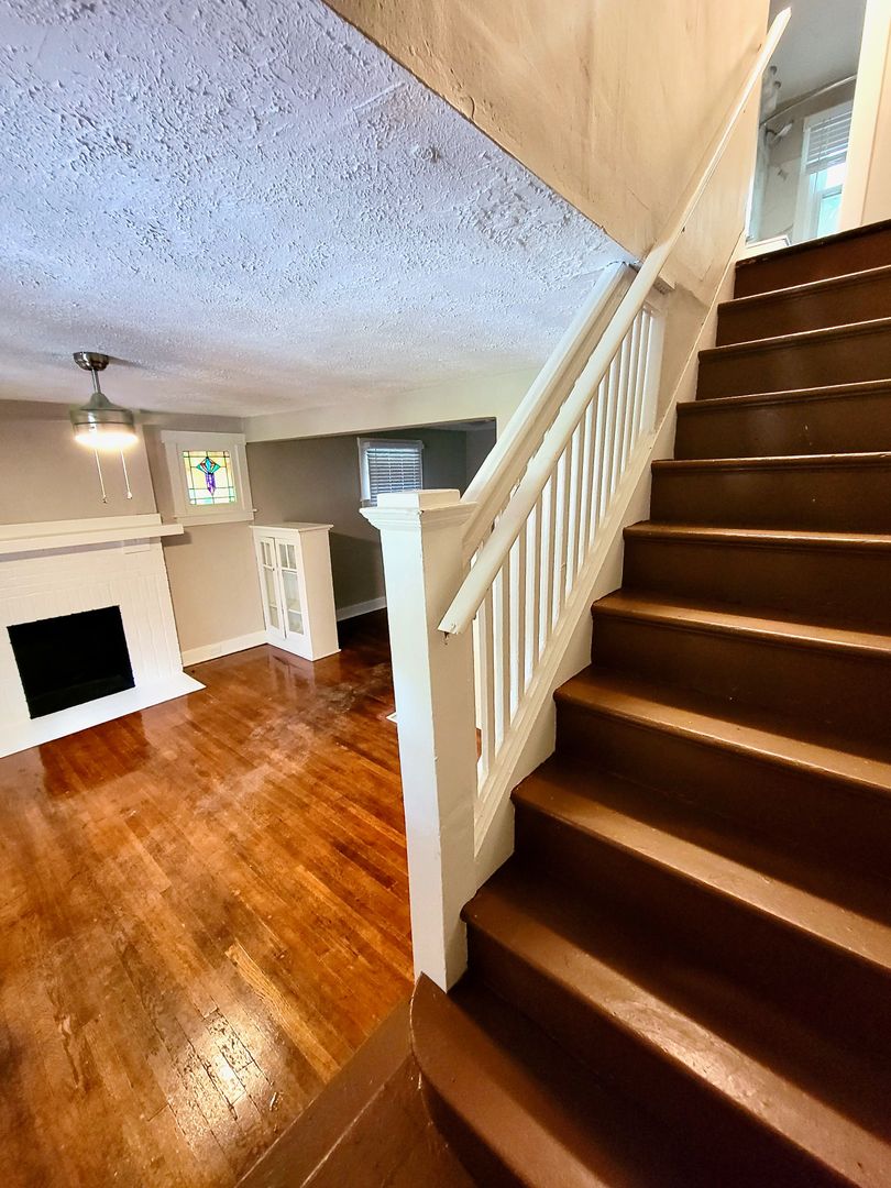 Newly renovated, this wonderful 2br duplex is a charming home with lovely touches that makes it homey and comfortable including stained glass windows, a beautiful decorative fireplace and original hardwood floors. Enjoy the space for a separate dining room, huge basement and large master bedroom. This unit also has a backyard perfect for your furry friend (no breed or weight restrictions!) with a nice front porch. Great place to let the kids or dog run around, or to pull out the grill and relax.