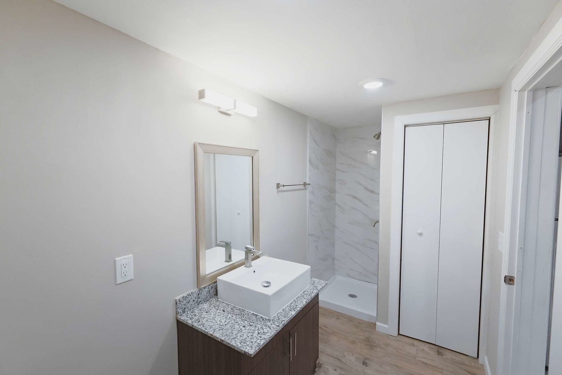 Modern lighting and plumbing fixtures throughout