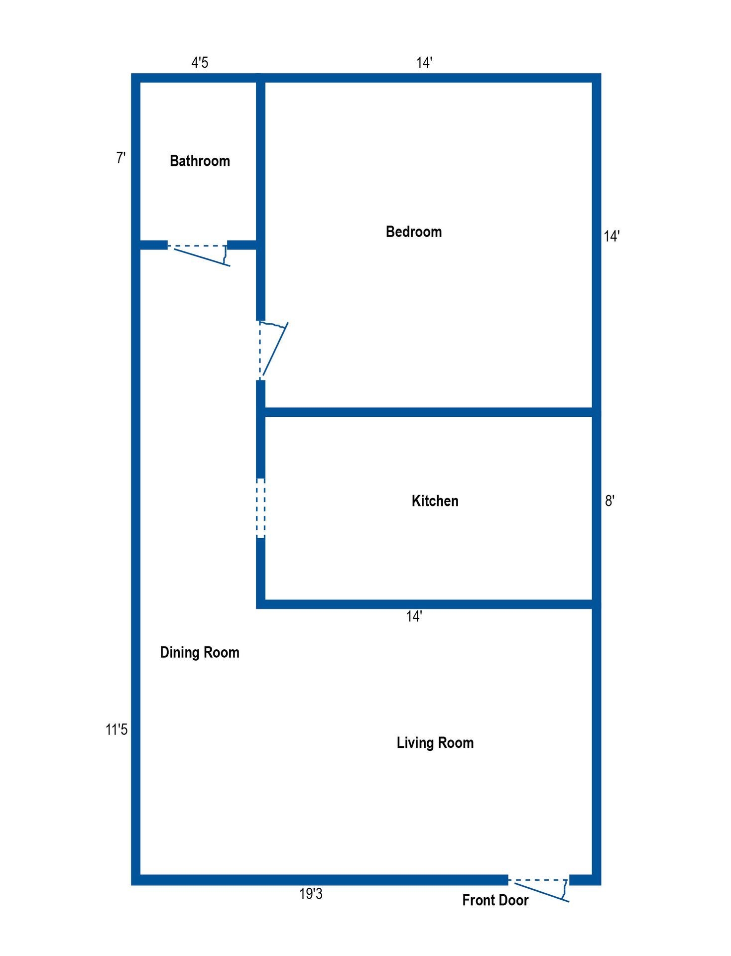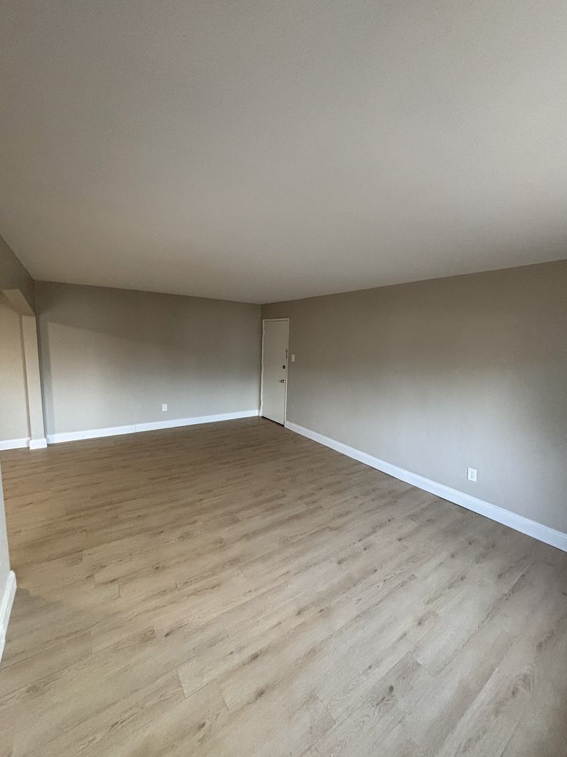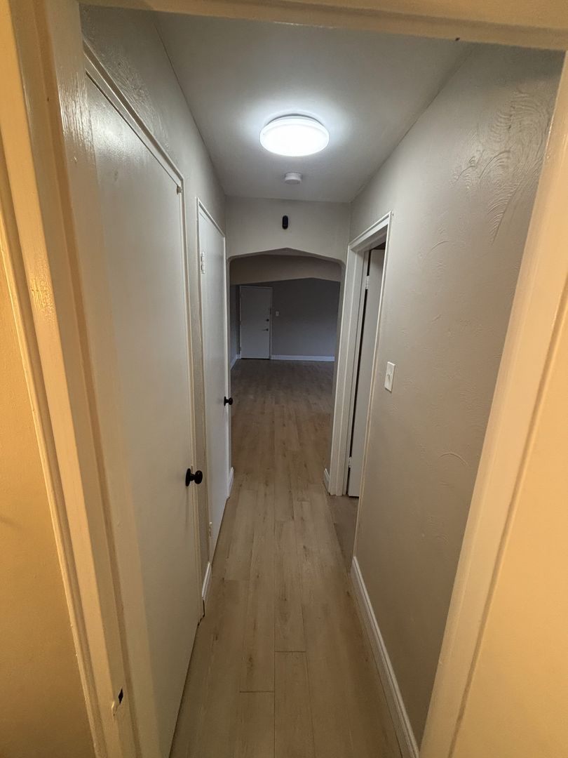 Spacious layout with an open living room/dining room and a large bedroom with a charming arched nook.